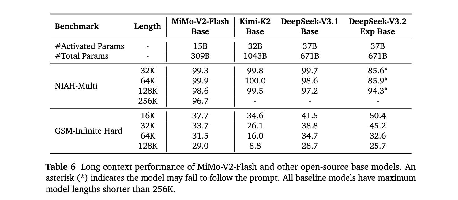 - MRCR: 45.7%(超越K2的44.2%),验证混合SWA架构对长上下文的鲁棒性