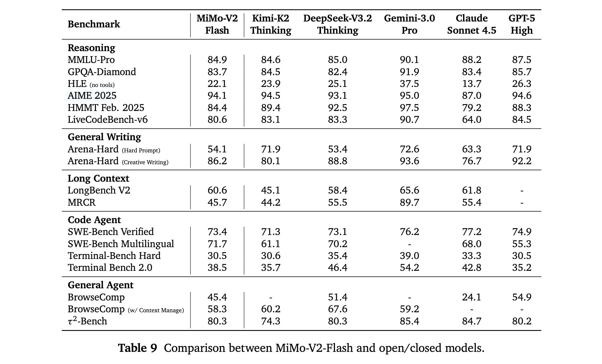 MiMo-V2-Flash在推理、Agent和长上下文任务上全面表现: