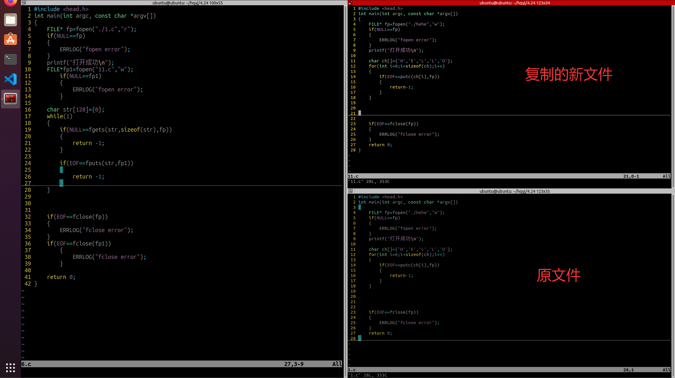 FILE*fp1=fopen("11.c","w");