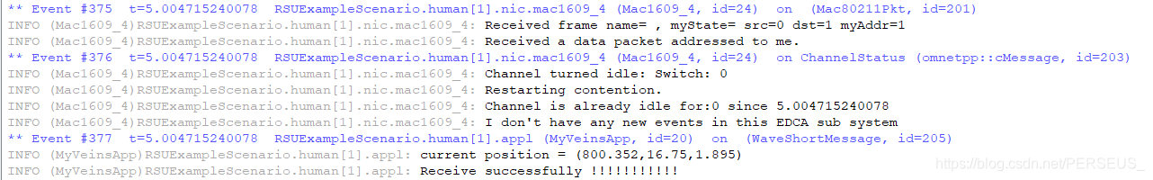 NOTE5:值得注意的是即使设置了目标地址,Veins在过程上还是将消息广播出去,其他车辆接收时在MAC层判断目标地址是否和自己一致,如果一致,将这个消息传递到上层,不一致则丢弃这个消息: