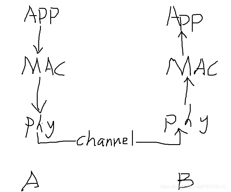 首先我们应该大体知道消息的传递方式如下图(灵魂画手),A给B发消息,最后会从B的Mac层upperLayerOut传到App层的LowerLayerIn接口: