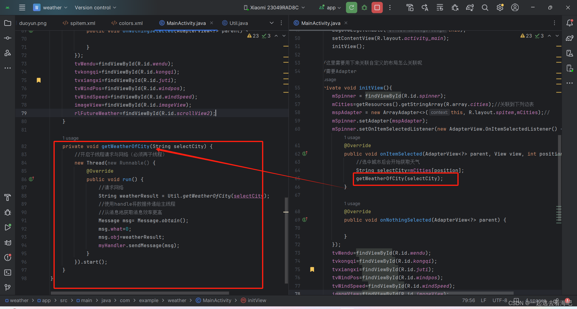 String weatherResult = Util.getWeatherOfCity(selectCity);