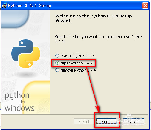 (3)repair一下,具体方法我不清楚,我猜测是下面图片这种方法,但是貌似这种方法只能修复系统python环境吧??我不是很清楚,希望有智慧的读者能够指出。
