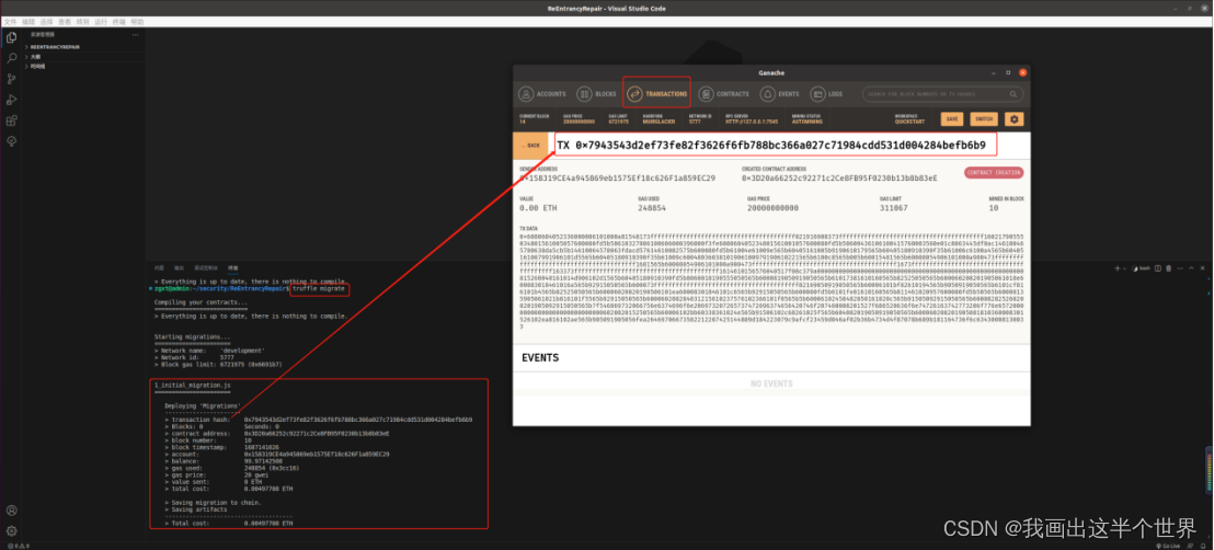 在 Ganache 里,点击 “Transactions” 可以看到交易详情