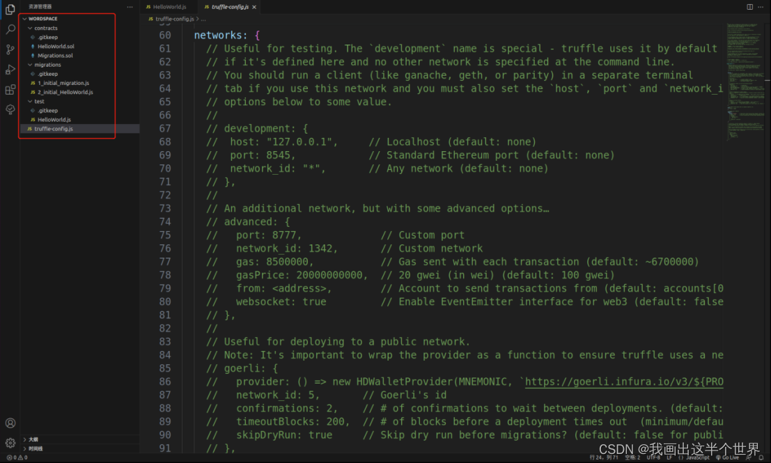 会生成三个文件夹contract、migrations、test,一个配置文件truffle-config.js