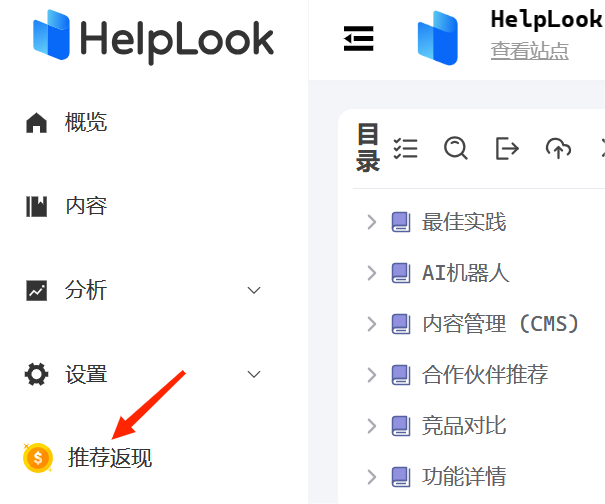 产品客户端内会有明确的指引(如下图HelpLook客户端-“推荐返现”)。同时,团队的CS运营成员在每次完成服务之后,也需要对老用户进行指引。