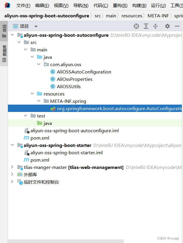 - 在 aliyun-oss-spring-boot-autoconfigure 模块中的定义自动配置功能,并定义自动配置文件 META-INF/spring/xxxx.imports