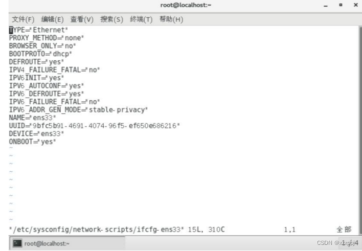 [root@hadoop100 桌面]#vim /etc/sysconfig/network-scripts/ifcfg-ens33