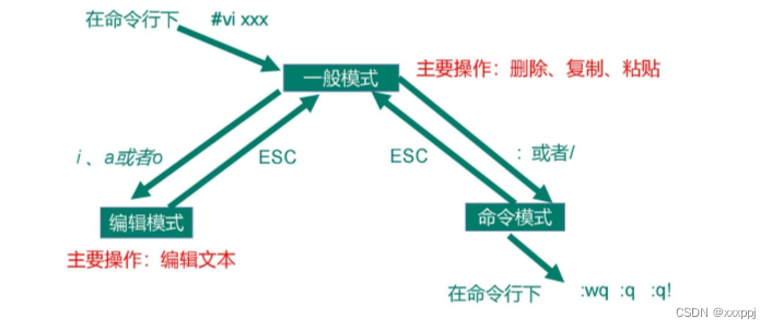 按『Esc』键 退出编辑模式,之后所在的模式为一般模式
