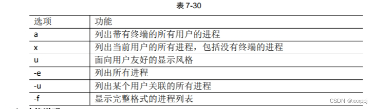 如果想查看进程的 CPU 占用率和内存占用率,可以使用 aux; 如果想查看进程的父进程 ID 可以使用 ef;