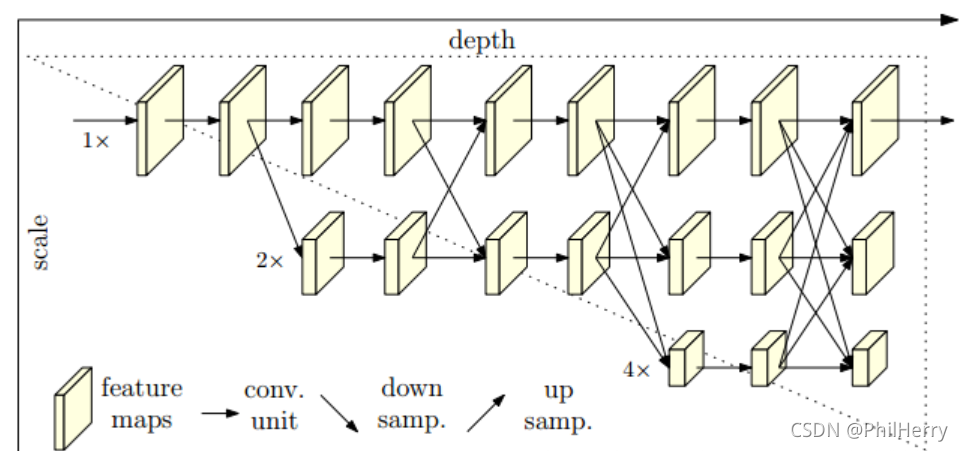与pose estimation的网络相比,此网络有两个好处: 1、此网络采用的是并行连接高分辨率到低分辨率的子网,因此,此方法能够保持高分辨率,而不是通过一个低到高的过程恢复分辨率,因此在预测的热图可能在空间上更精确 2、此网络使用重复的多尺度融合,利用相同深度和相似级别的低分辨率表示来提高高分辨率表示,反之亦然,从而使得高分辨率表示对于姿态的估计也很充分