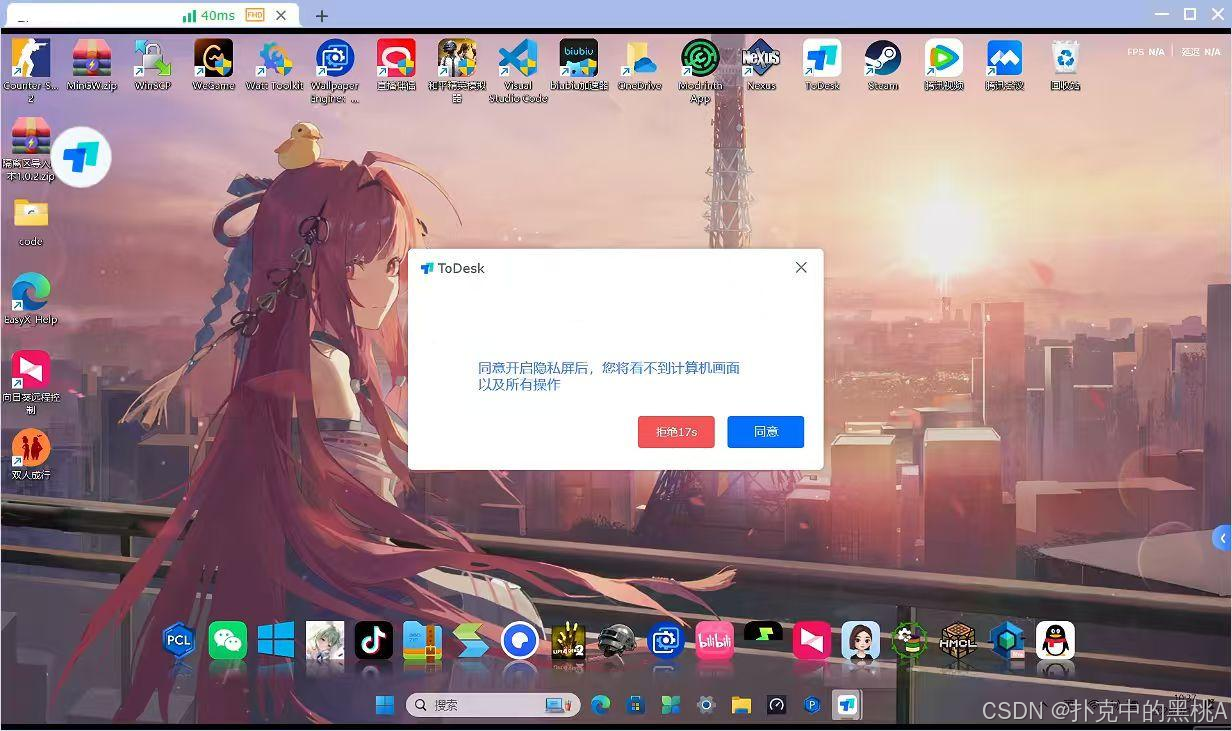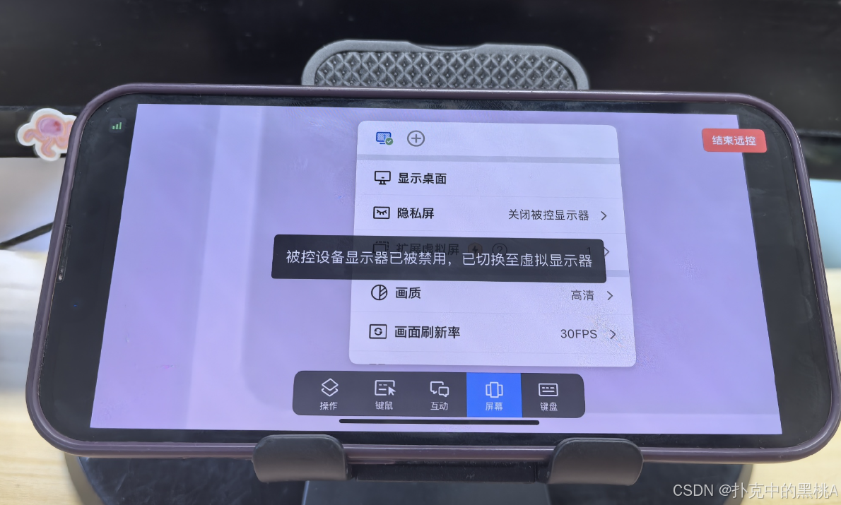 隐私屏:远程控制时开启隐私屏即可隐藏被控端屏幕内容,位置在悬浮球下面的“小眼睛”那里。