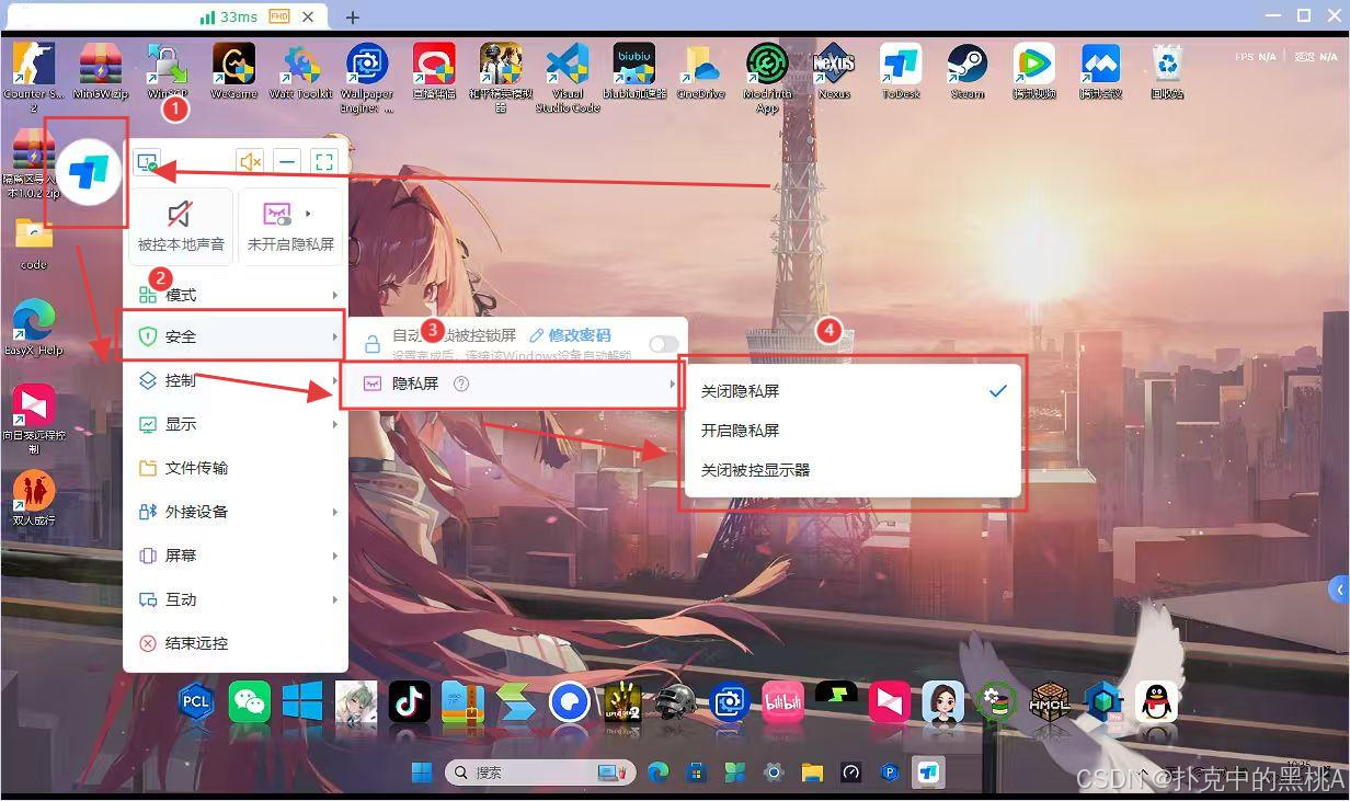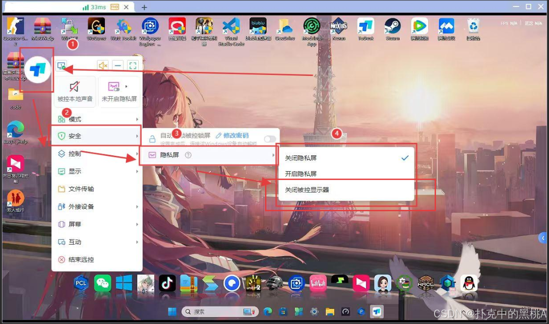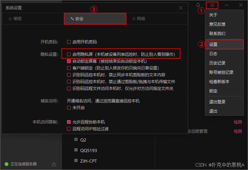 被控端防窥模式:远程控制时设置为仅显示黑屏,隐藏被控端屏幕内容