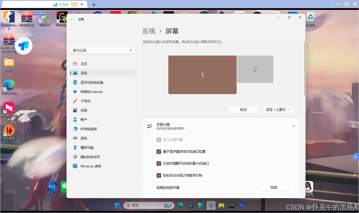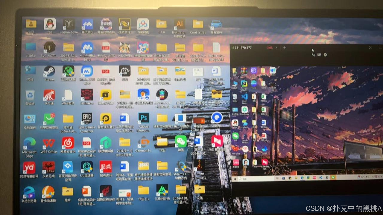 被控端(受控电脑): 笔记本电脑,AMD Ryzen 7 5800X 处理器,16GB RAM,Windows 10 家庭中文版。连接两台显示器:一台 AOC Q27G2S (2K) 作为主屏,一台 Dell P2419H (1080p) 作为副屏。