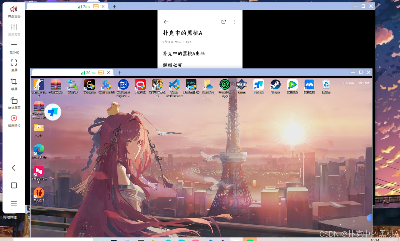 3.就可以打开咱们的虚拟屏了,可在被控端创建虛拟屏,将虛拟屏拖至主控端副屏,充分利用主控端多屏效能。