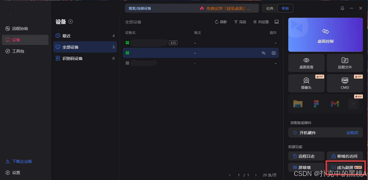 一键变身拓展屏:设备列表中点击“成为副屏”功能即可,但是需要收费