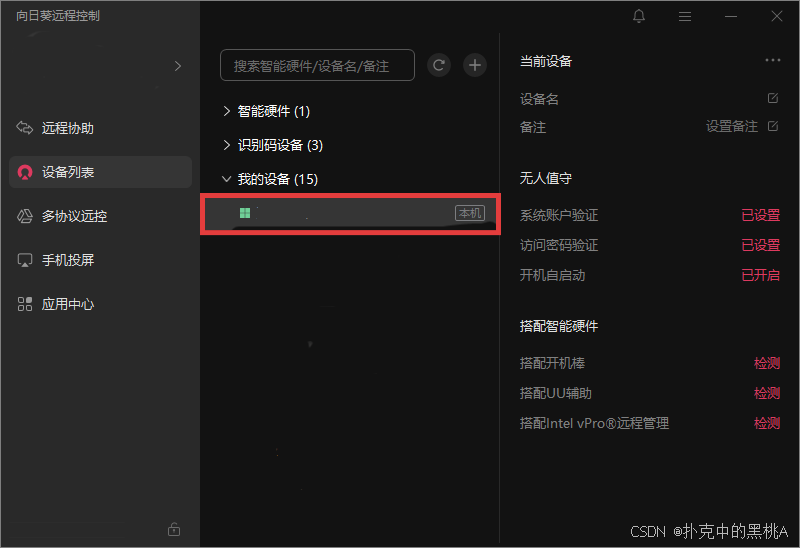 1.主控端和被控端登录同一向日葵账号,并将被控端设备加入设备列表;不然就是要加入识别码设备。