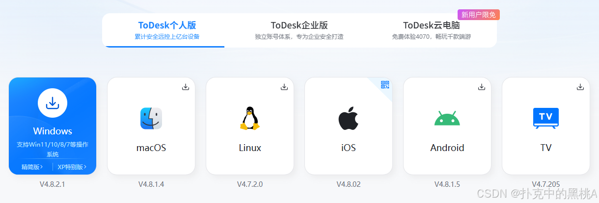 | 跨平台支持 | Windows, macOS, Linux, Android, iOS,TV | Windows, macOS, Linux, Android, iOS | Windows, macOS, Android, iOS (Linux欠缺,被控只能是Win系统) | |