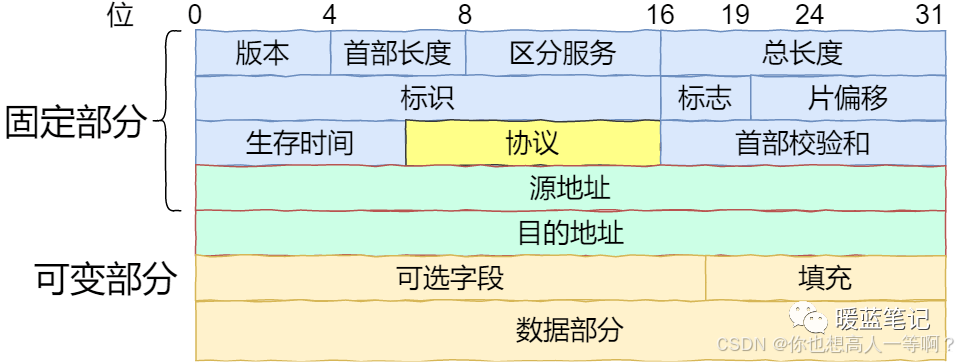 在网络中,所有的设备都会分配一个地址。这个地址就仿佛小蓝的家地址「多少号多少室」,这个号就是分配给整个子网的,「室」对应的号码即分配给子网中计算机的,这就是网络中的地址。「号」对应的号码为网络号,「室」对应的号码为主机号,这个地址的整体就是 IP 地址。