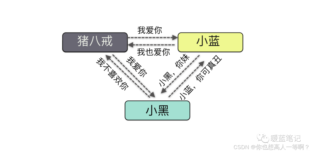 猪八戒要向小蓝表白,于是写了一封信给小蓝,结果第三者小黑拦截到了这封信,把这封信进行了篡改,于是乎在他们之间进行搞破坏行动。这个马文才就是中间人,实施的就是中间人攻击。好我们继续聊聊什么是中间人攻击。