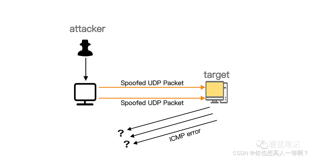 由于目标服务器利用资源检查并响应每个接收到的 UDP 数据包的结果,当接收到大量 UDP 数据包时,目标的资源可能会迅速耗尽,导致对正常流量的拒绝服务。
