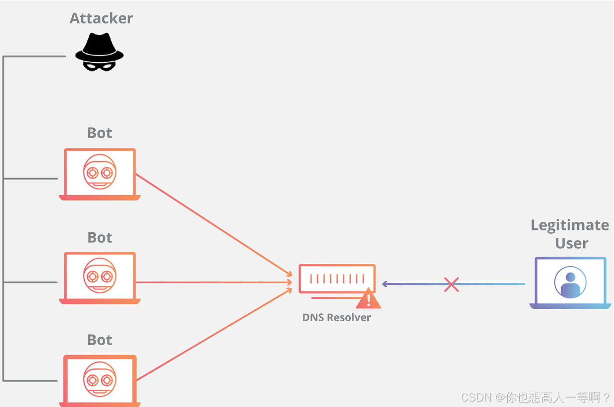域名系统(DNS)服务器是互联网的“电话簿“;互联网设备通过这些服务器来查找特定 Web 服务器以便访问互联网内容。DNS Flood 攻击是一种分布式拒绝服务(DDoS)攻击,攻击者用大量流量淹没某个域的 DNS 服务器,以尝试中断该域的 DNS 解析。如果用户无法找到电话簿,就无法查找到用于调用特定资源的地址。通过中断 DNS 解析,DNS Flood 攻击将破坏网站、API 或 Web 应用程序响应合法流量的能力。很难将 DNS Flood 攻击与正常的大流量区分开来,因为这些大规模流量往往来自多个唯一地址,查询该域的真实记录,模仿合法流量。