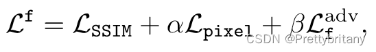 公式 (4) 中的 LSSIM 表示结构相似性损失,旨在衡量生成的融合图像与源图像之间的结构相似性。
