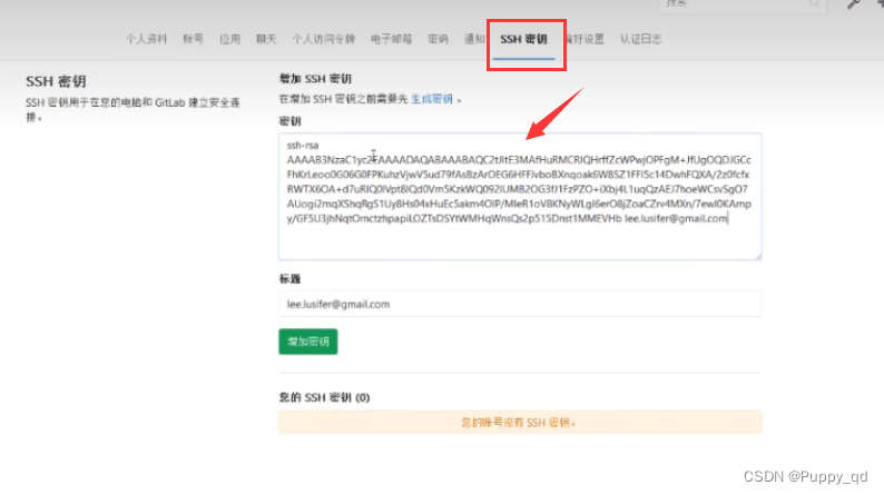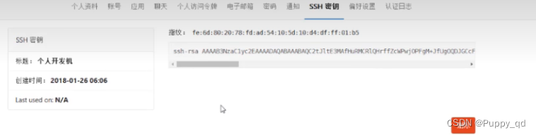 查看生成的SSH :C:\User\电脑的用户名\.ssh\id_rsa.pub