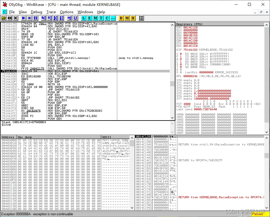 E xception 000006BA . exception is non-continuable
