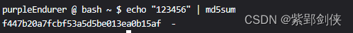 purpleEndurer @ bash ~ $ echo "123456" | md5sum -b
