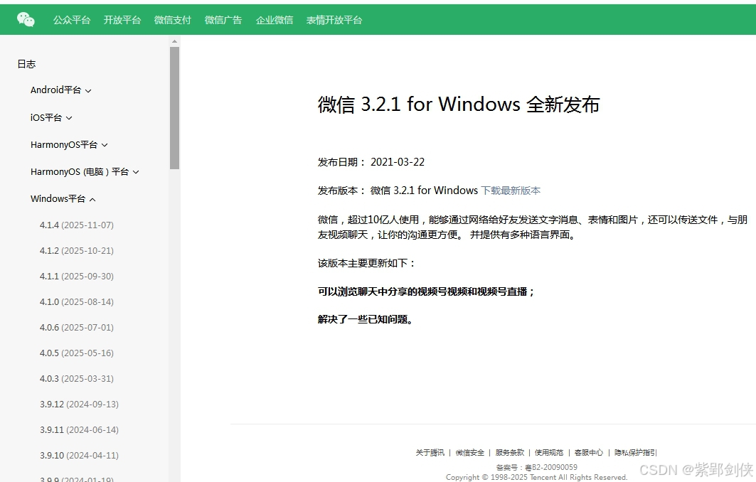 直接到微信官网上,找到了Windows系统下的3.2.1版本的介绍: