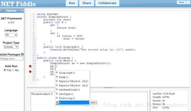 图D .NET Fiddle代码编辑器同时提供智能感知和验证。