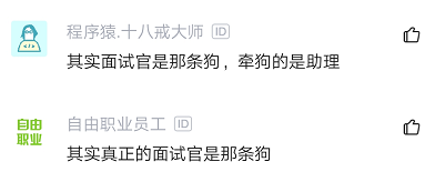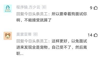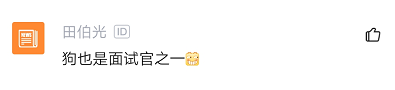 这样不也挺好的,牵着狗来面试你,省得你进来之后发现周围全是宠物,觉得受不了,然后离职,一个小小的细节就可以看出这面试官考虑的很周全![]()