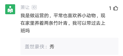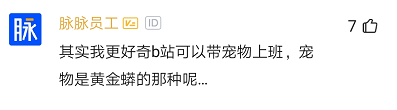一位脉脉员工说到:其实我更好奇B站可以带宠物上班,那么如果宠物是黄金蟒的那种呢