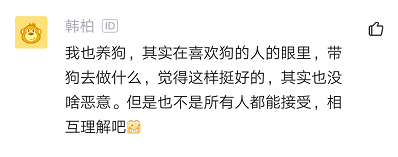 我也养狗,其实在喜欢狗的人眼里,这样做也没什么恶意,但也不是所有人都能接受,相互理解一下吧![]()
