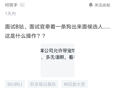 一位百度员工表示:这也没啥啊,B站是允许带宠物上班的,