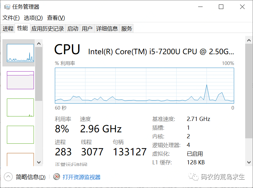 如果此时你正在计算机旁,并且安装有 Windows 或者 Linux ,你可以立刻看到自己的计算机 CPU 使用率是多少。