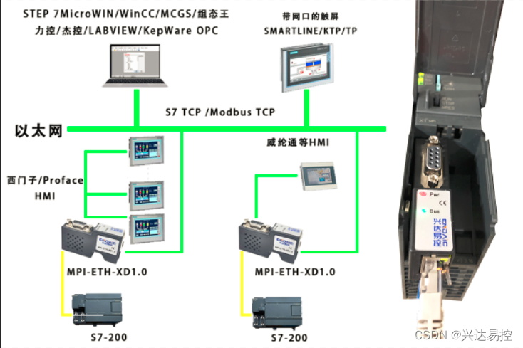 兴达易控mpi转以太网模块(MPI-ETH-XD1.0)利用C#代码程序监控PLC程序,转该程可以实现与西门子全系列plc(200,200smart、300、400PLC)的以太网s7通讯,同样兼容ppi转以太网通讯,传输快稳定。开发了一个通用类库可以读取写入各种类型的数据,字符串,bool,16位整数,32位整数,浮点数。