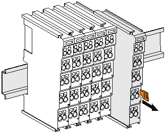 XD系列产品使用插片式方案,模块与耦合器接线通过卡槽直接与耦合器连接,或接在其它IO模块后面按下图所示进行安装