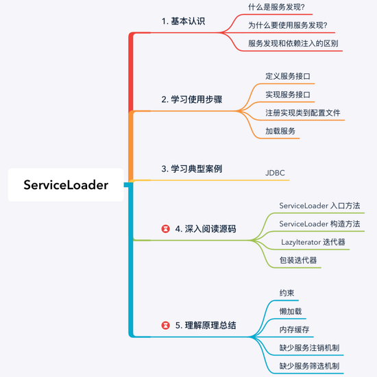 理解 ServiceLoader 源码之后,我们总结要点如下: