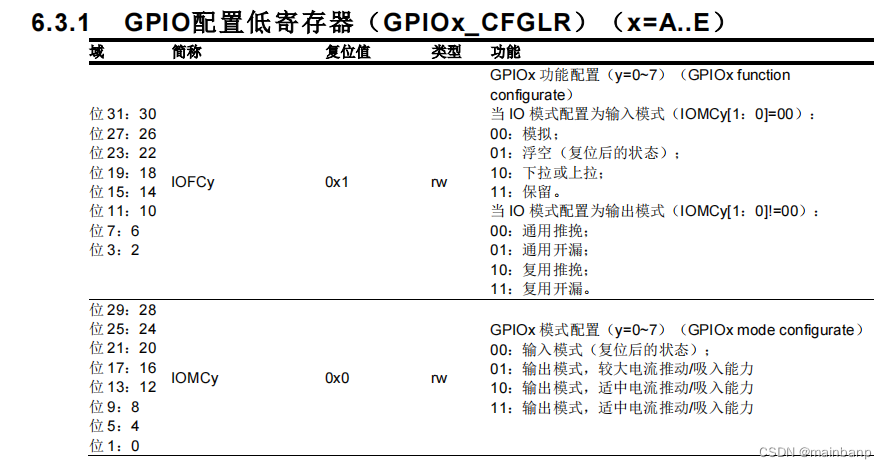 GPIOA_CFG是一个寄存器,这里面分为了GPIOA_CFGLR,GPIOA_CFGHR