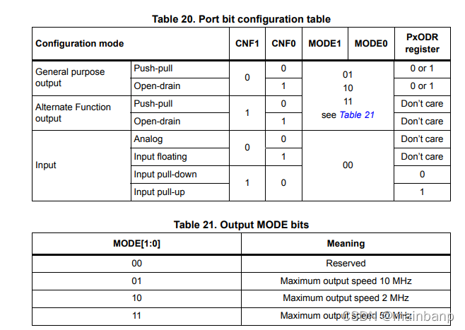 对照表:Table 29. Port bit configuration table 很容易理解。