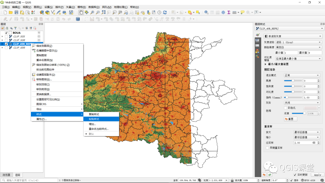 10.在CLIP_49S_REPRJ图层上点击鼠标右键“样式-->粘贴样式”。