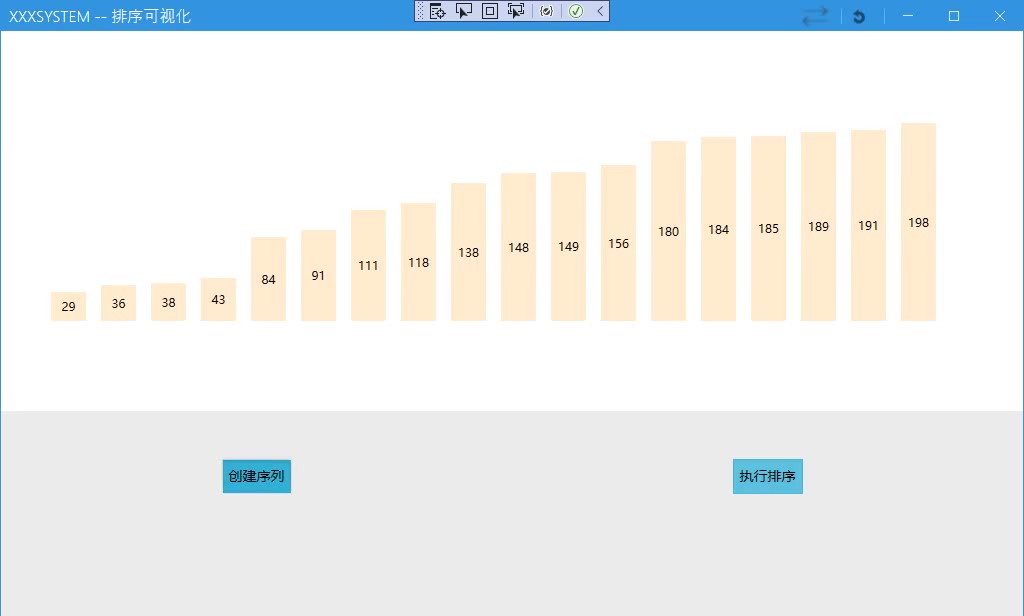 WPF 实现冒泡排序可视化 实现冒泡排序代码就不过多讲解,主要是实现动画效果思路,本demo使用MVVM模式编写,读者可自行参考部分核心代码,即可实现如视频所示效果。对于新手了解算法相关知识应该有些许帮助,至于其它类型排序,也可按该思路自行修改实现。WPF 实现冒泡排序可视化。