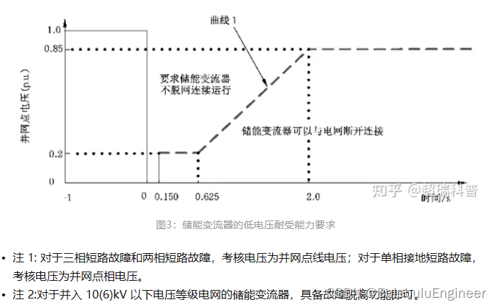 LVRT是指当电力系统事故或扰动引起光伏电站并网点的电压跌落时,在一定电压跌落范围和时间间隔内,光伏电站能够保证不脱网连续运行,避免电网故障的扩大化,同时光伏并网逆变器需要能够发出一定的有功和无功功率,以支撑电网恢复;低电压穿越主要的理论依据是电网遭受雷击等事故时,只是瞬时跌落,这个时候要求发电机不能够马上脱网,而要支撑一段时间,等事故结束后,迅速恢复并网。这能够有效防止电网由于偶发事故(如雷击)崩溃;低电压穿越(LVRT)标准最早见于是德国的中压并网(BDEW)标准,各国标准都是参考德国标准而制定;