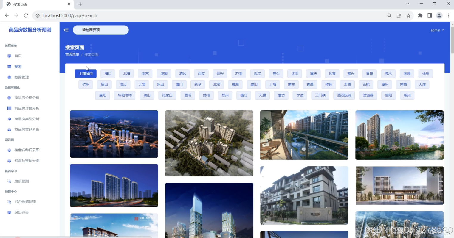 数据预测:系统根据历史房源数据和特征,结合机器学习算法,进行房价或房源供需的预测。可以通过回归模型预测房价走势,或者通过分类模型预测楼盘的热度和销售情况等。