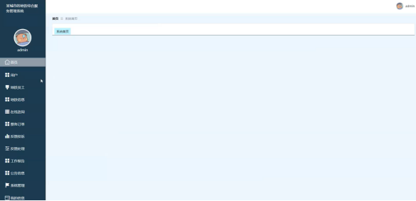 管理员点击登录摁钮进入某城市的地铁综合服务管理系统对首页、用户、地铁员工、地铁信息、在线咨询、票务订单、反馈投诉、反馈处理、工作报告、公告信息、系统管理、我的信息等功能,进行相应操作,如图5-7所示。