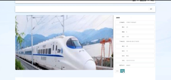 用户点击票务订单,在票务订单页面的输入栏中填写车次号,进行查询,可以进行支付等操作,如图5-4所示: