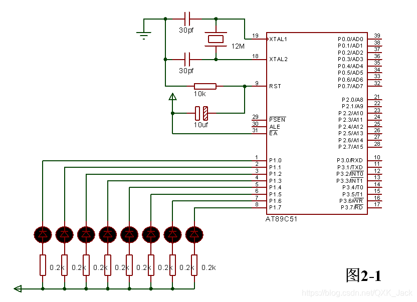 9.用LJMP编写汇编语言源程序使图2-1的LED从LED0到LED7依次单个点亮,且如此循环。