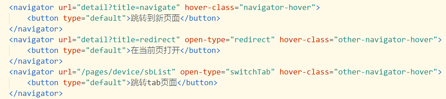 示例:使用navigator组件实现三种不懂方式的跳转。